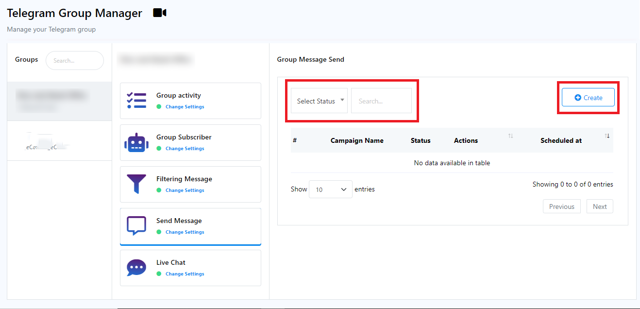 - To initiate the process, navigate to the `Telegram Group Manager` and select a bot from the group`s Live Chat window. Click on the chosen bot to proceed.
