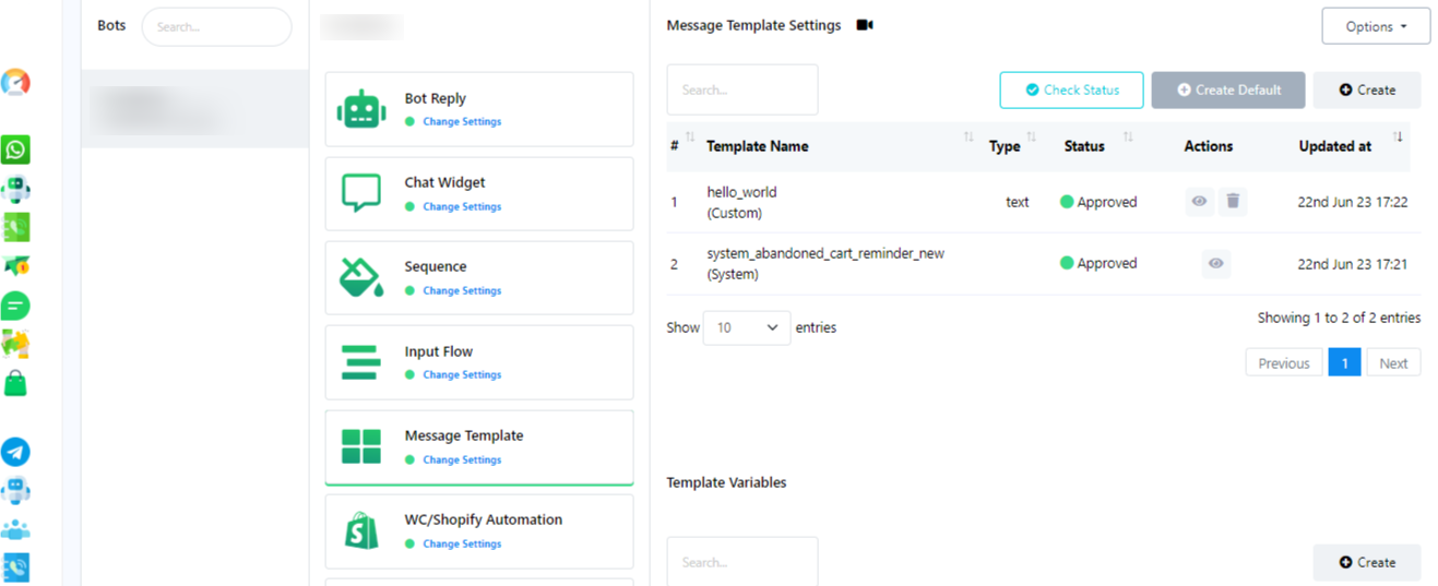 - Create a Message Template.
